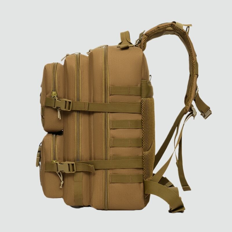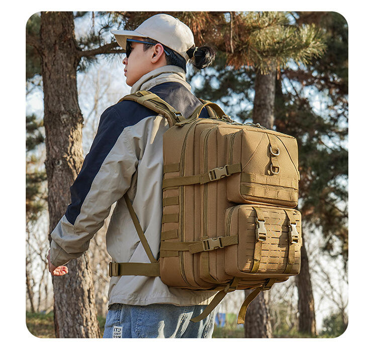 The sides and front of the pack are extensively equipped with a MOLLE webbing system (also known as PALS webbing), a hallmark design of military backpacks. This allows you to flexibly attach various MOLLE-compatible pouches, water bottle holders, first-aid kits, or other gear, enabling limitless personalization and expansion. It perfectly adapts to different scenarios, be it tactical missions, outdoor survival, or EDC (Every Day Carry).