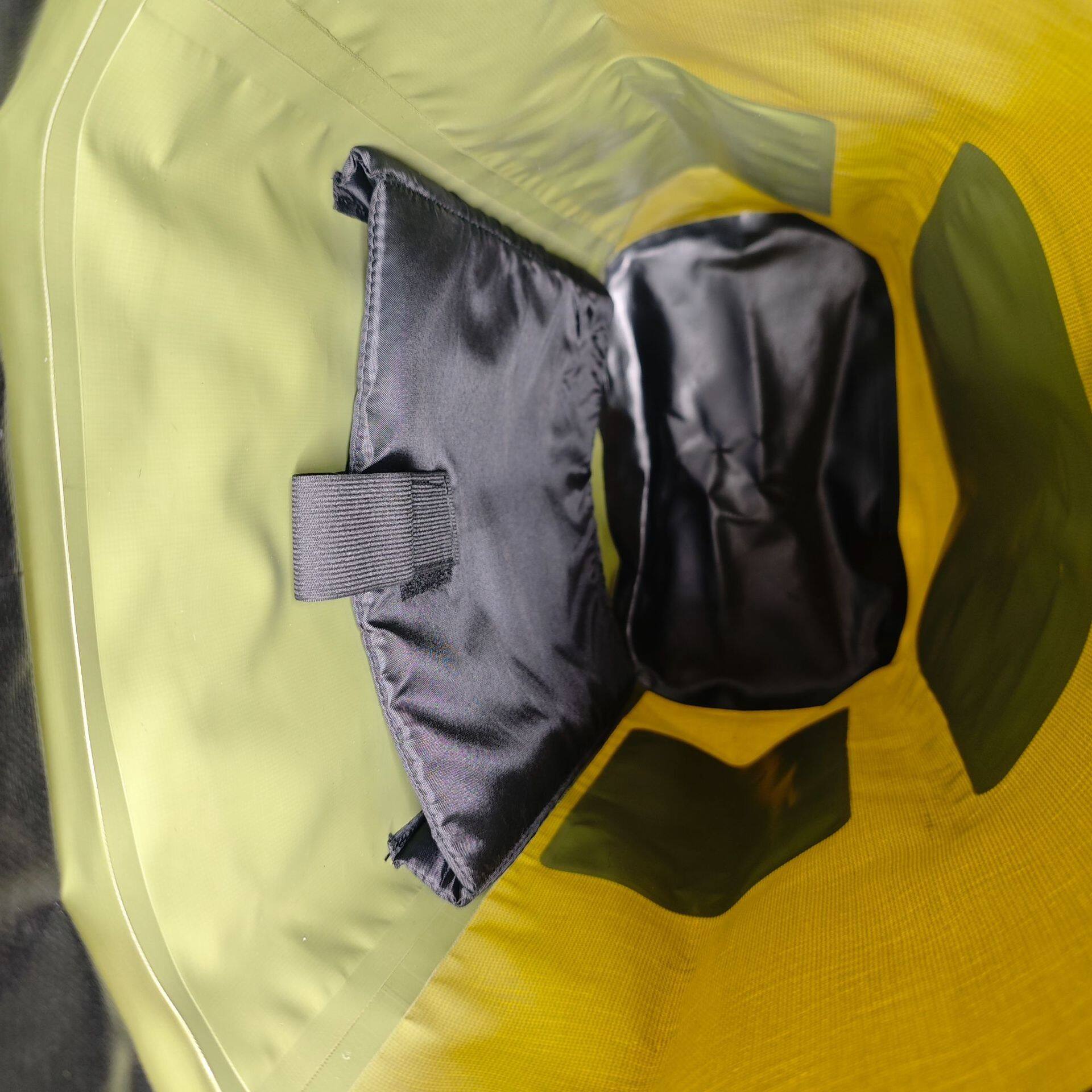 Roll-Top Design, Flexible Expansion: The unique roll-top closure, paired with a softer yet durable PVC Oxford fabric at the opening, offers superior sealing and allows flexible capacity adjustment from 35L to 45L, easily adapting to the loading needs of different trips.