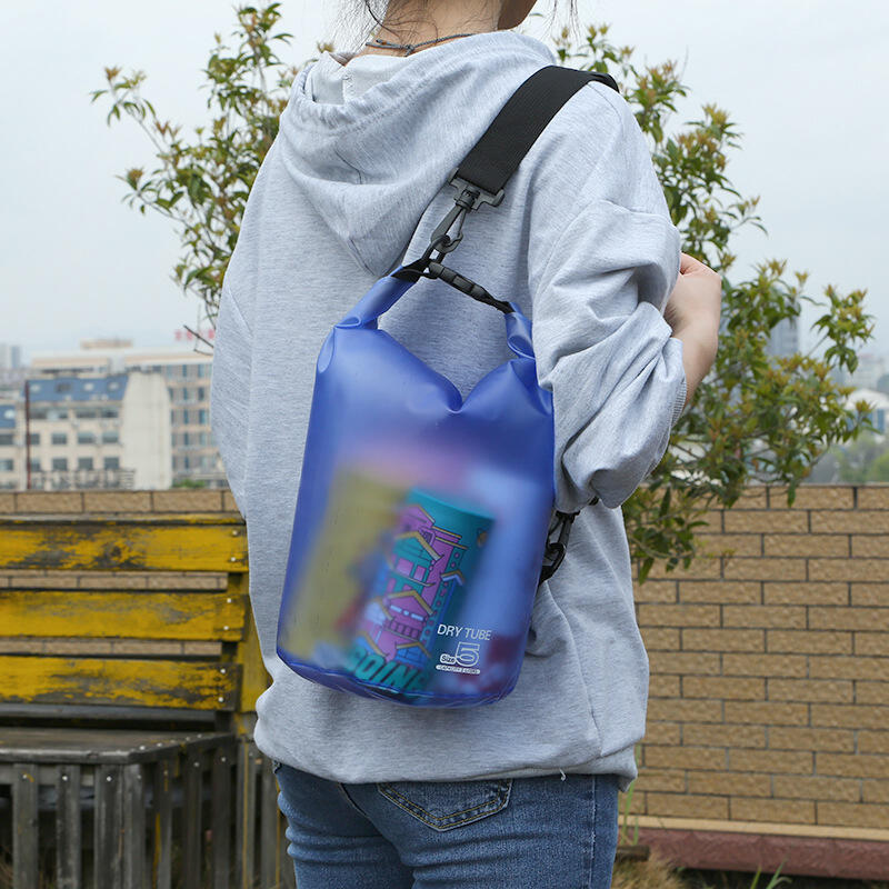 Aesthetic Appeal: The frosted, semi-transparent finish offers a subtle, stylish look. Paired with a simple roll-top closure, this bag is the definition of lightweight style, easily complementing any outfit.