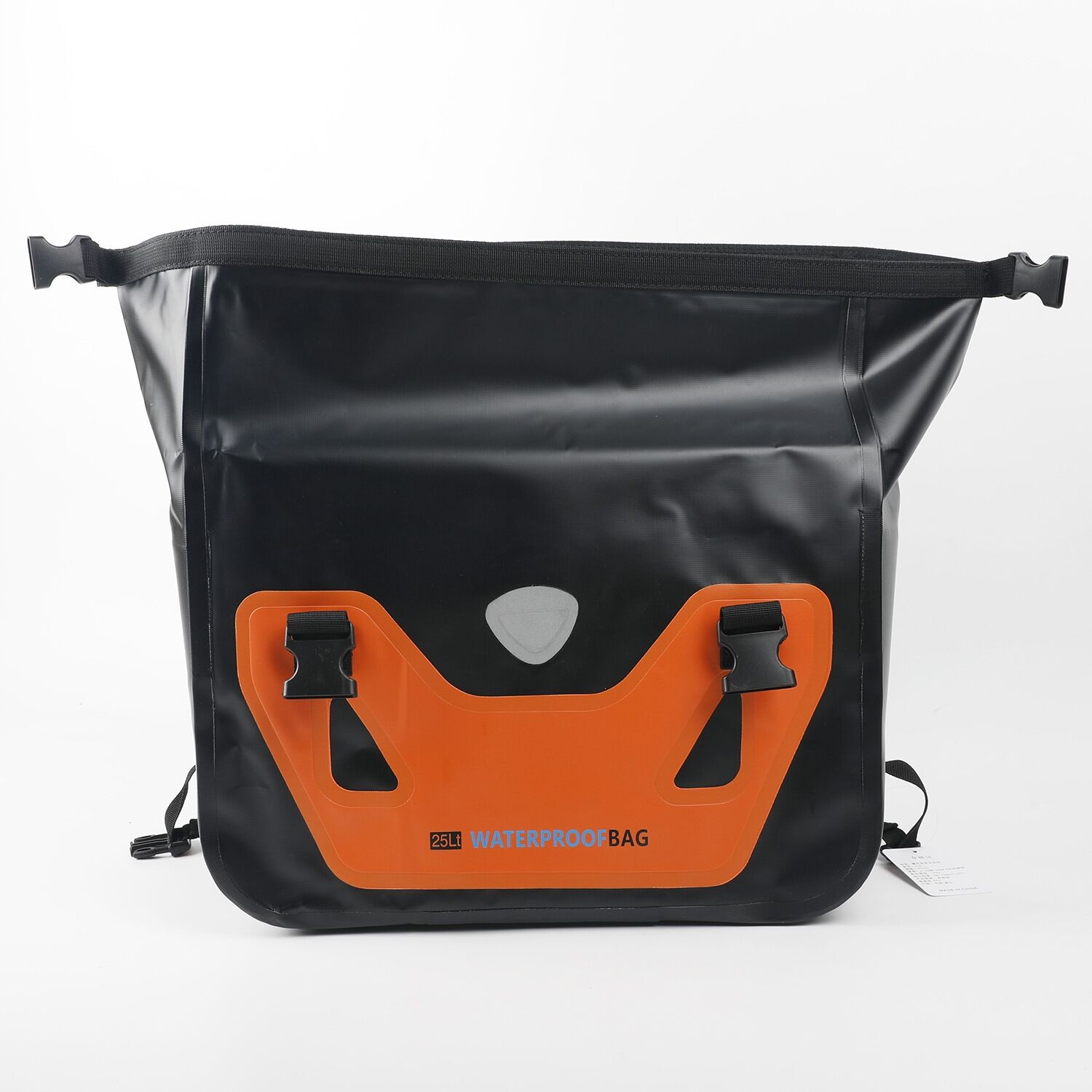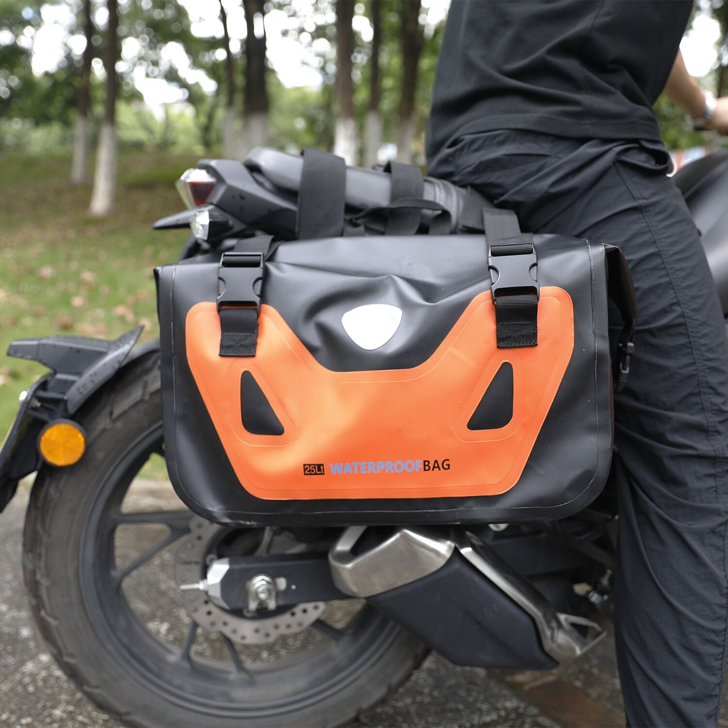 We proudly present the Dual Waterproof Roll-top Saddlebags, designed specifically for motorcycle riders. Whether you're commuting daily or planning a weekend getaway, these saddlebags, crafted from PVC tarpaulin material using high-frequency heat sealing technology, are your reliable travel companion. Offering a massive 50L total storage capacity (25L x 2), their core feature of complete waterproofing ensures your belongings stay dry, no matter the weather.