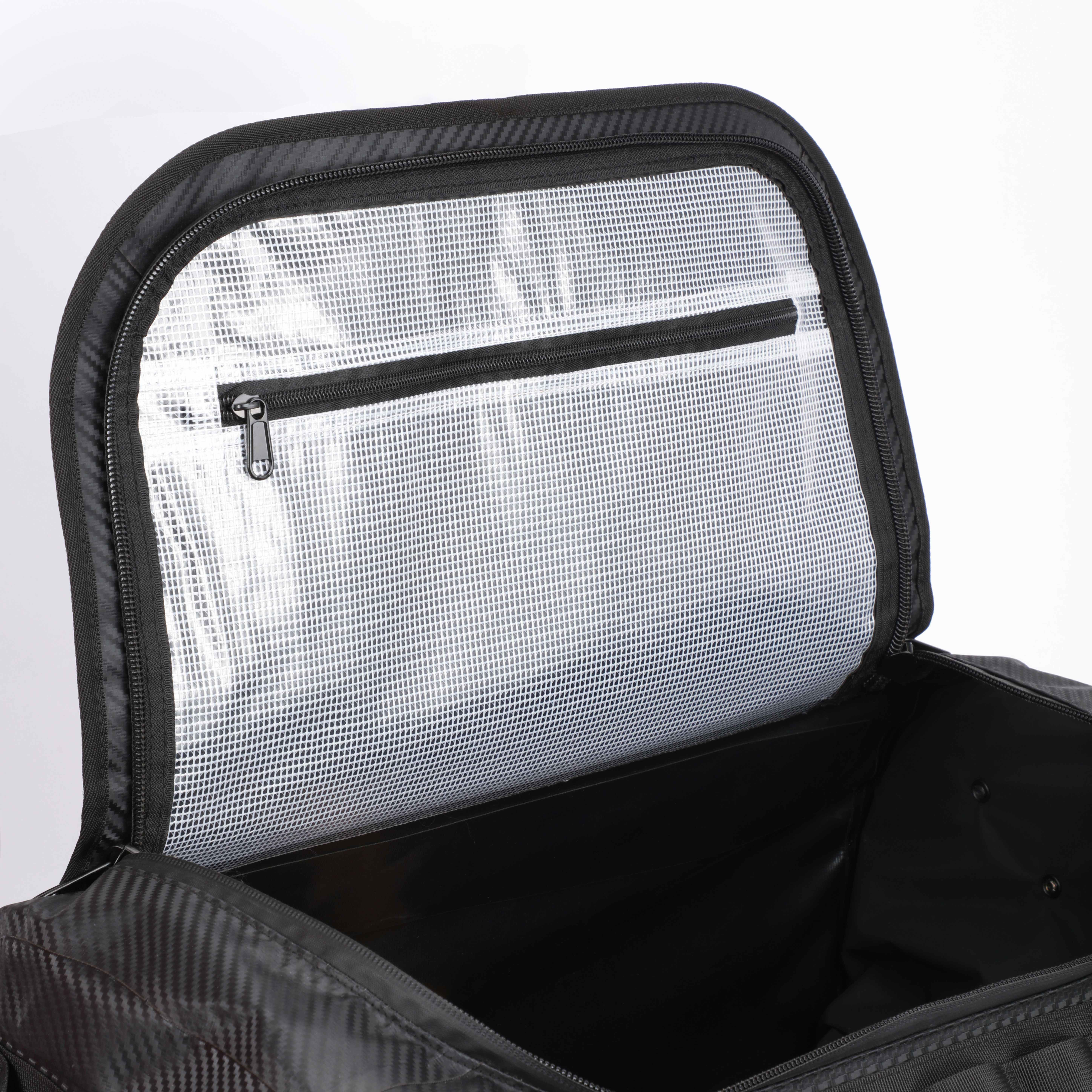 High-Performance Carbon Fiber PVC Material: The bag is constructed from carbon fiber PVC fabric, which offers not only excellent waterproof qualities but also outstanding abrasion, scratch, and tear resistance. The distinctive texture provides a professional, low-profile look while ensuring robust protection.